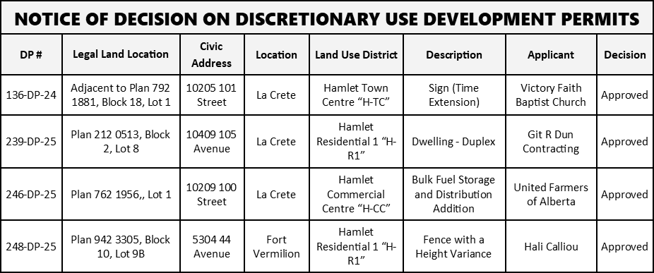 Notice of Decision on Discretionary Use Development Permits